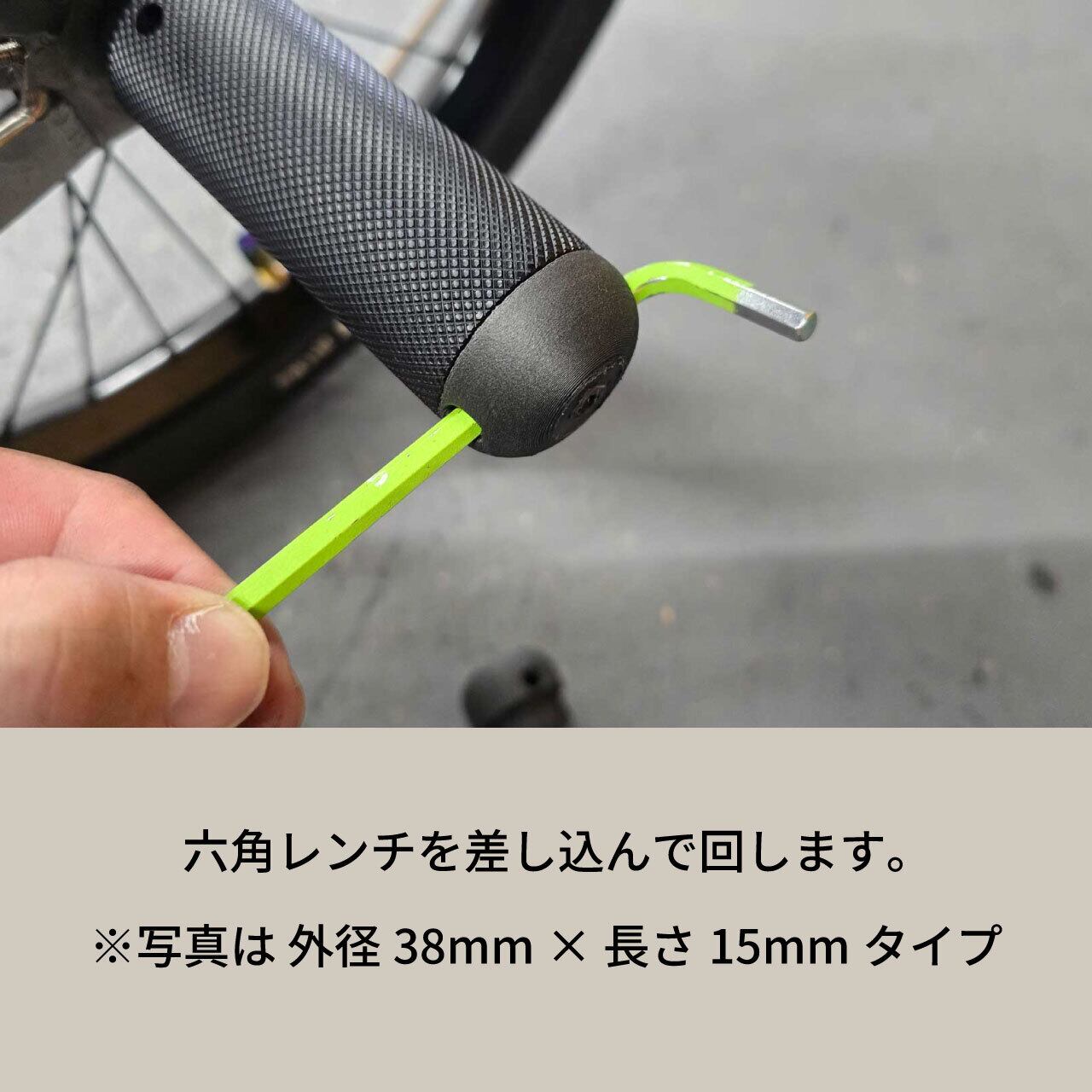 六角レンチ(6mm以下)を穴に通して締めこむタイプ。